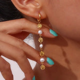Los Pendientes Ríos de Luz son una joya elegante y sofisticada que combina la pureza de las perlas blancas naturales con la durabilidad del acero inoxidable 316L terminado en baño de oro. Su diseño largo y fluido, con perlas de 6 mm, aporta movimiento y un toque de distinción a cualquier look, desde eventos especiales hasta el día a día.