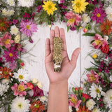 Enciende uno de estos atados y permite que su humo sutil limpie tus pensamientos, renueve tu entorno y despierte una sensación profunda de bienestar. Diseñado para ceremonias, meditaciones o simplemente para crear atmósferas de serenidad y conexión interior, su duración de dos horas ofrece un momento prolongado de quietud y propósito.